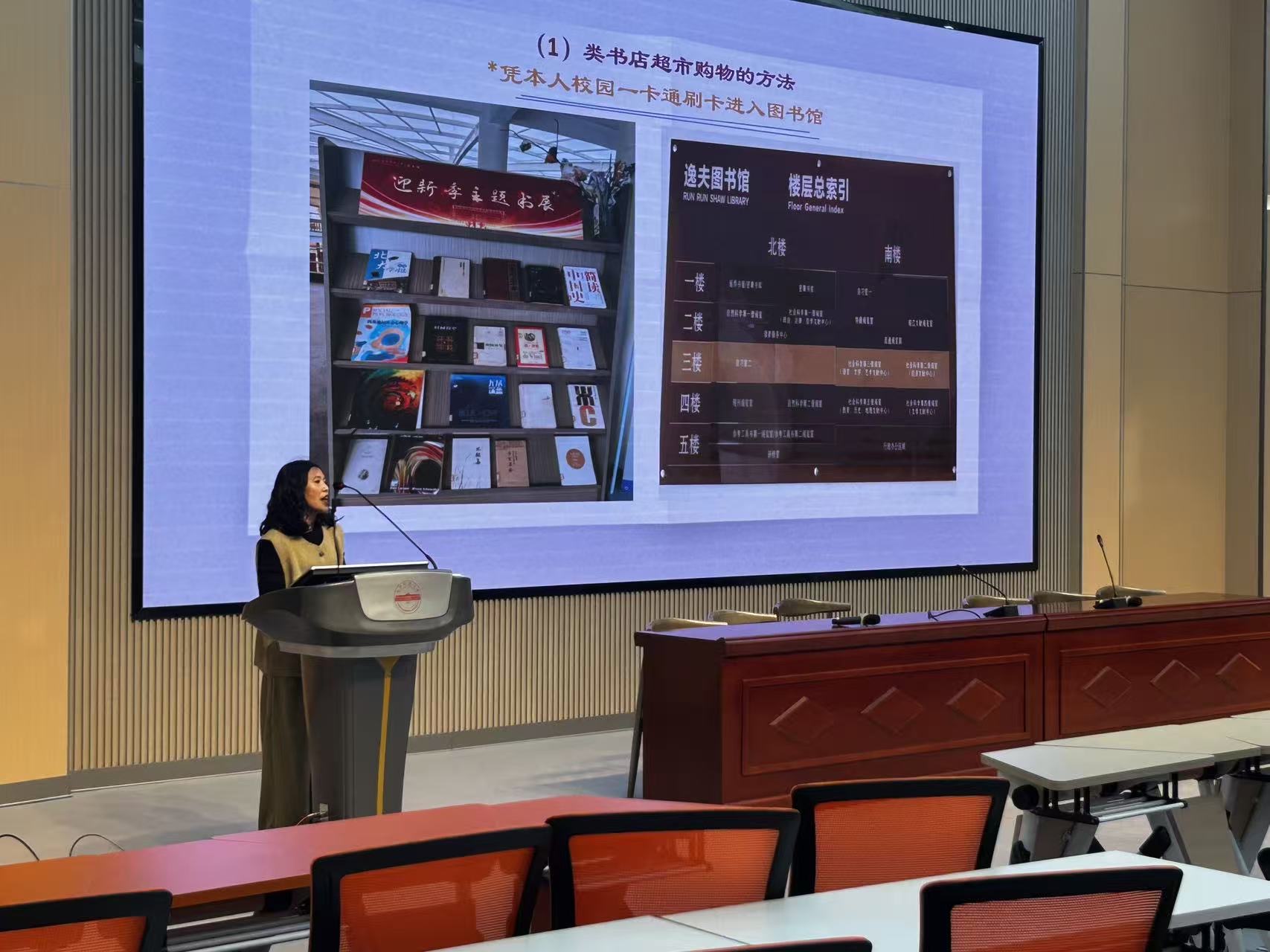 培训中,汪银燕老师以“如何用好图书馆资源”为核心,从多维度展开讲解:先介绍图书馆整体概况与空间布局,帮助新生建立初步认知;随后解读借阅规则、馆内秩序等制度规范,明确文明用馆要求;重点聚焦资源检索技巧、图书借还流程及专业数据库使用,通过清晰演示,让新生直观掌握获取学术资源的实用方法。同时,她还现场引导同学们扫码关注图书馆官方公众号,方便大家实时接收咨询服务、活动通知等最新信息,确保资源与服务“触手可及”。