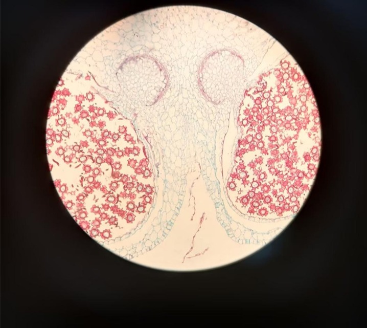 在收到的作品中,爱心形神经元图像以艺术化形态呈现其科学结构,让神经科学与人类情感巧妙交融;曲霉类真菌经染色后,蓝色孢子囊如星群点缀菌丝网络,诠释科研与美学的融合之美;尖孢镰刀菌的显微作品揭秘农业病害微观机理,纤细菌丝与典型孢子为相关研究提供直观形态依据;地钱孢子体纵切则化身为童趣“章鱼小怪物”,以充满趣味的微观形象呈现其亿万年演化出的繁殖策略。