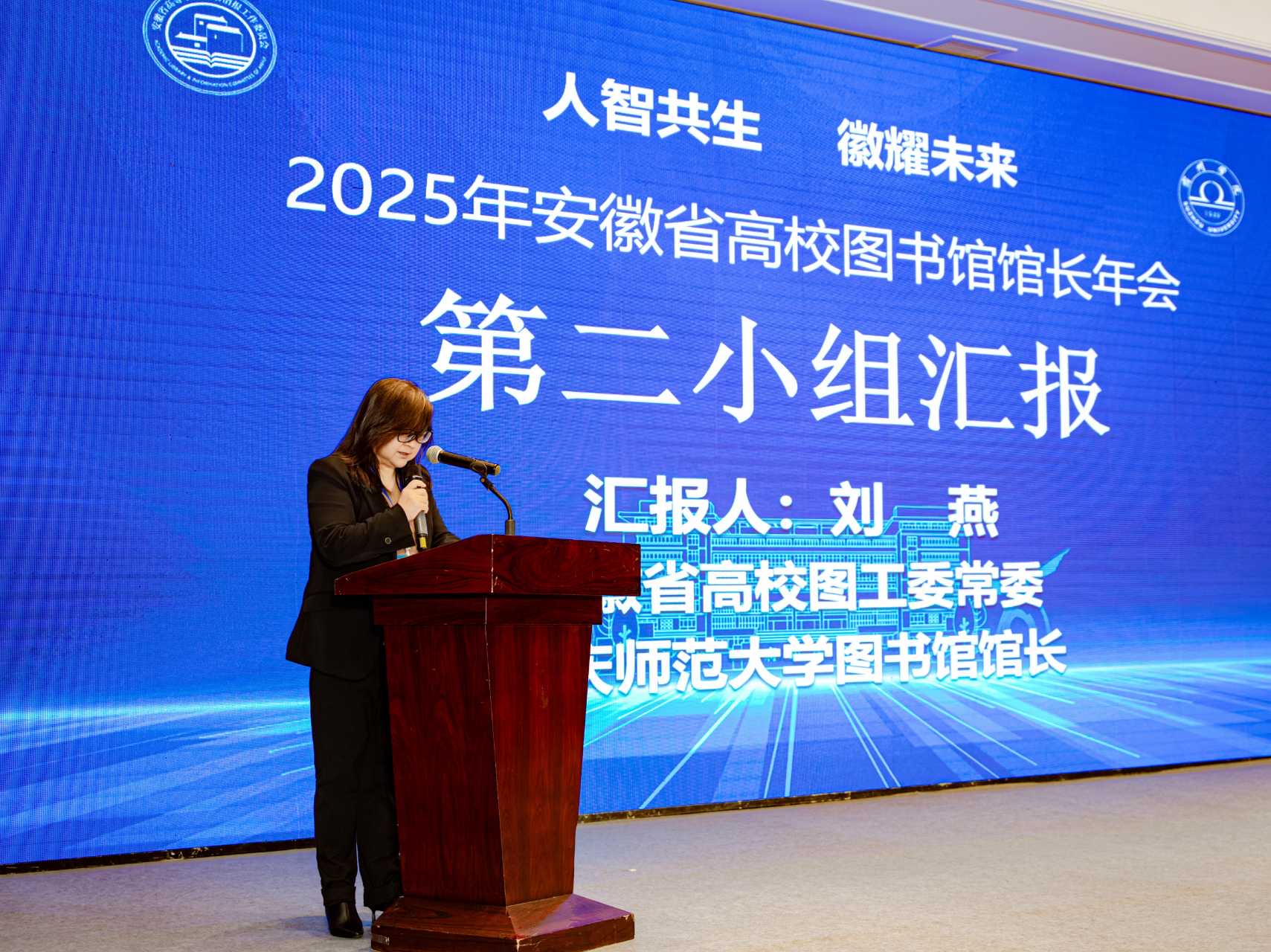 安徽省教育厅高教处任雯君、省图工委秘书长储节旺、宿州学院副院长陈得宝分别致辞,西安交通大学图书馆副馆长杨峰做主题报告,与会代表围绕 “十五五”规划与AI赋能、职业发展与馆员队伍建设、学科服务与教学支持、文化建设与阅读推广四大议题展开分组研讨。我校图书馆馆长刘燕作“职业发展与馆员队伍建设”主题交流发言。