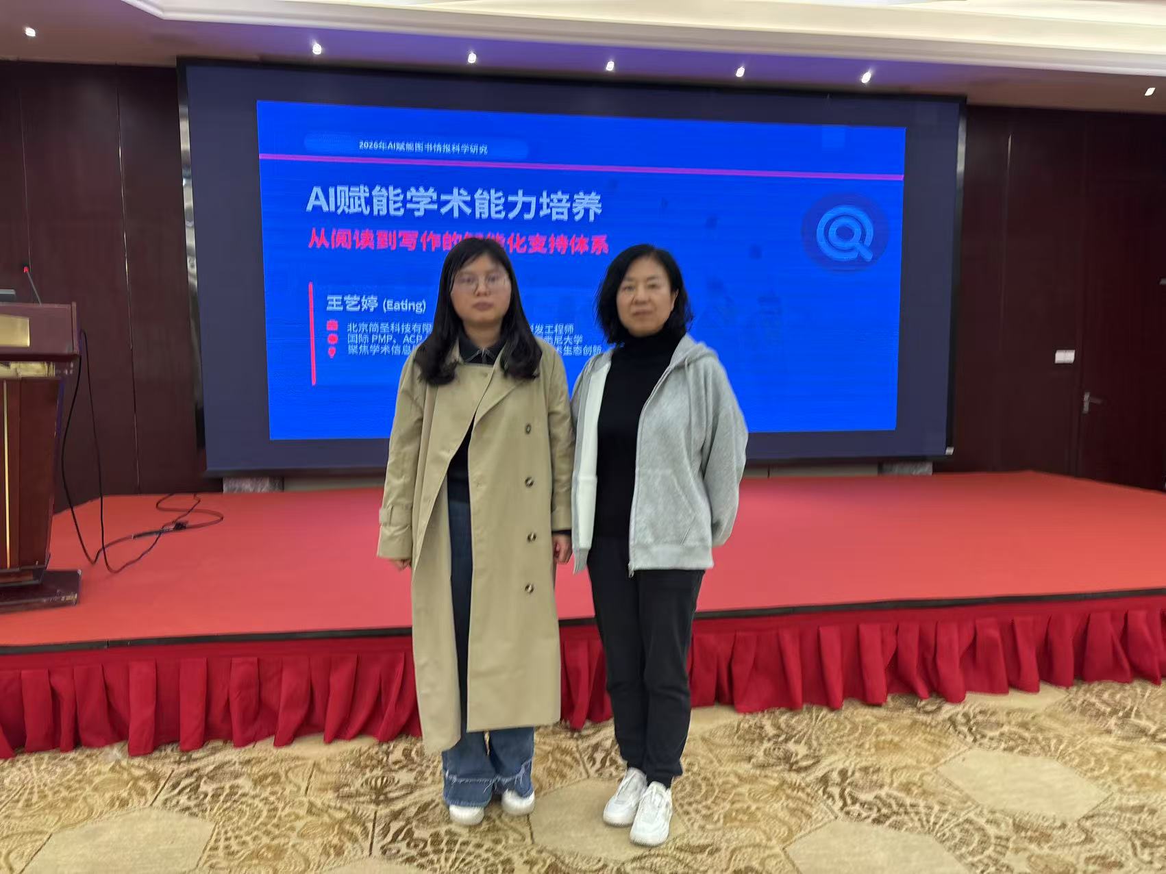 培训期间,两位老师认真聆听专家报告,积极参与现场交流,重点围绕AI技术在文献资源建设、学术情报分析、科研效率提升等方面的应用进行了深入学习。两位老师表示,本次培训紧扣行业前沿,内容务实、重点突出,不仅加深了对人工智能赋能图书情报工作重要意义及实践路径的认识,也掌握了可直接应用于日常工作的实用方法与工具。返校后,她们将及时梳理培训成果,推动学习内容向服务实践转化,积极探索AI技术在读者服务、学科支持、科研辅助等方面的应用,持续优化服务流程,提升服务品质,为学校教学科研和人才培养提供更加智能、高效、精准的文献信息保障。