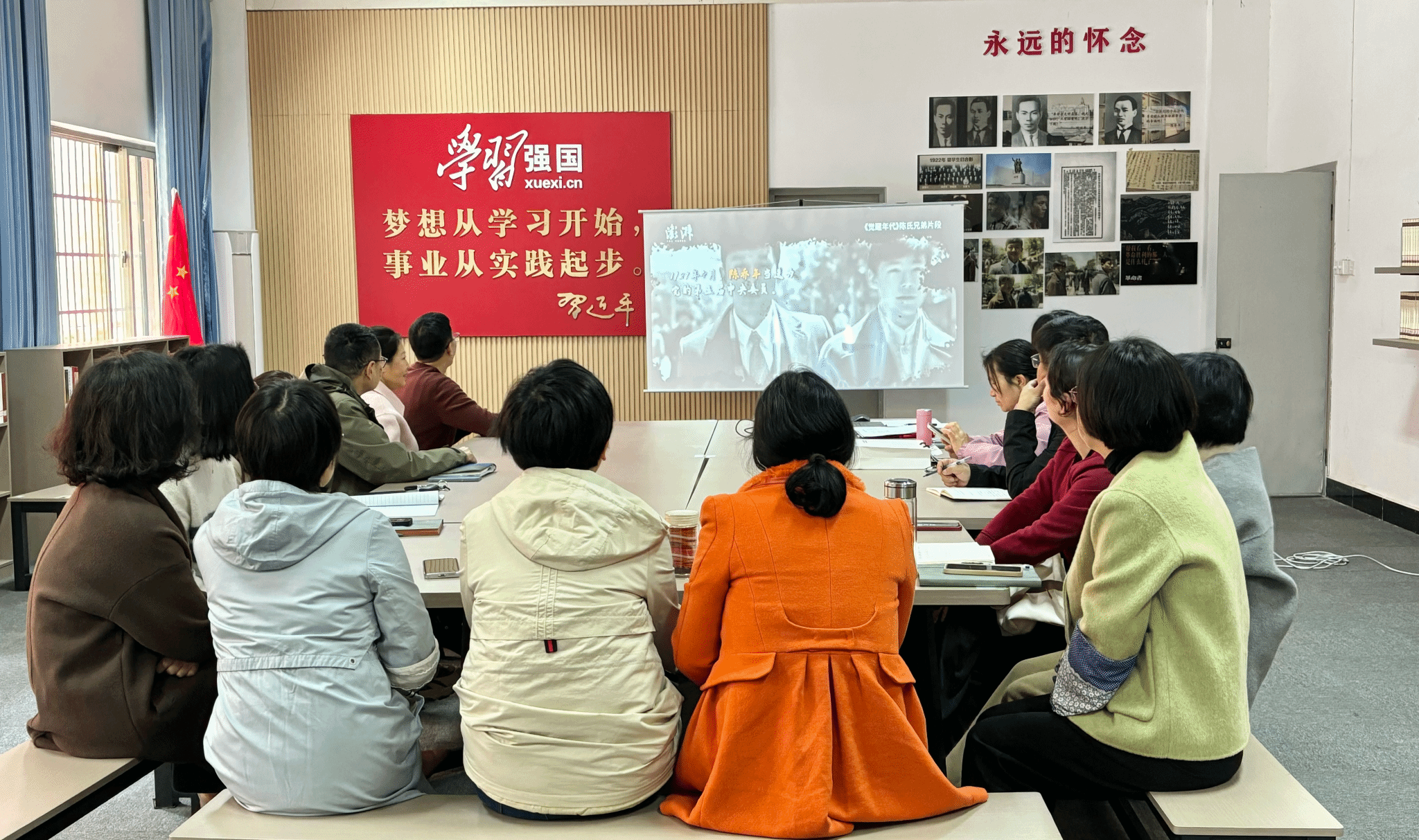 全体与会人员来到图书馆“延乔书屋”,瞻仰了陈延年陈乔年烈士塑像,重温了入党誓词,收看了关于陈延年、陈乔年烈士事迹的相关纪录片,重温革命历史,致敬革命先烈,表达对英烈的崇敬之情,活动现场大家在两位烈士雕像前瞻仰默哀、鞠躬致敬。 陈延年烈士说过,“革命者只有站着死,绝不下跪!”“我们的党不是从天上掉下来的,也不是从地上生出来的,更不是从海外飞来的,而是在长期不断的革命斗争中,从困苦艰难的革命斗争中生长出来的,强大出来的。”生活在和平年代,我们应当居安思危,不断传承革命精神,珍惜如今的幸福生活,为共同创造更加美好生活而不懈奋斗。