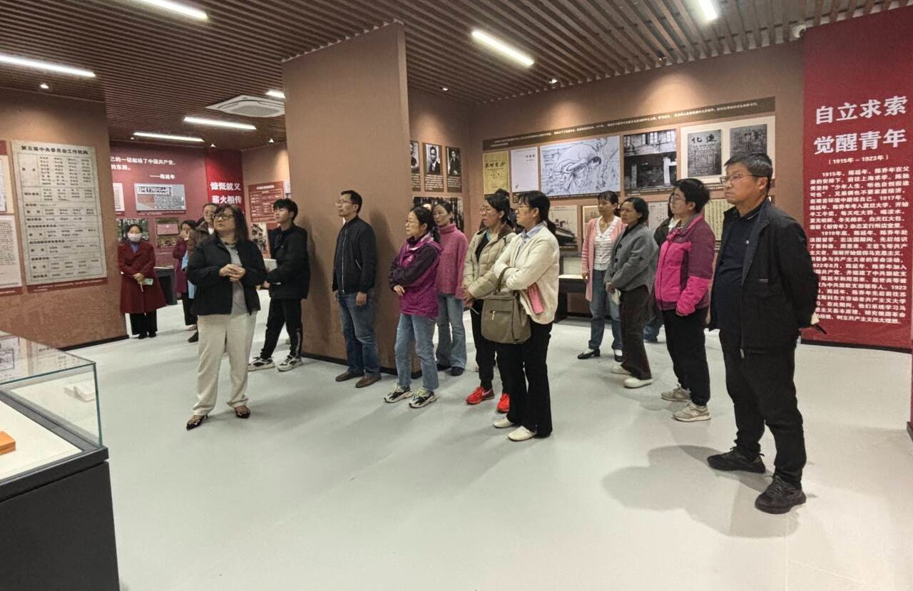 全体党员参观了位于图书馆一楼西北厅的陈延年、陈乔年烈士生平展,展区共有四个部分组成,分别是:故里启蒙、自立求索、披荆斩棘、慷慨就义。在参观过程中,讲解老师以生动的讲述和详实的史料,系统梳理了延乔兄弟从安庆启蒙、沪上求学,到远渡法国追寻真理,直至为革命英勇献身的壮烈历程。借助文献、复刻油画与实物展品,那段热血澎湃的岁月被真实还原,“自立求索、追求真理、不怕牺牲、勇于担当”的“延乔精神”深深烙印在每一位党员心中。
