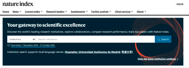 Nature Index由Springer Nature发布,追踪各机构研究者在145本独立评选的高质量自然科学和卫生科学期刊上的研究论文的贡献。